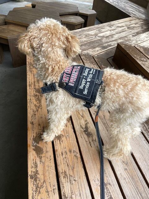 ヴィンテージ風のエプロンを付けてお散歩やドックカフェへお出かけしてみませんか?